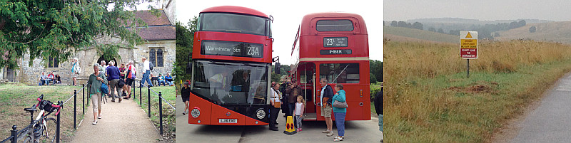 Bus price? Imber Bus say "To enable visitors to explore our services in an affordable way, we will again be offering an all day ticket at a cost of £10 per adult, with up to 3 children allowed to accompany each adult for the bargain fare of just £1 each. However, ordinary bus fares will also be available and so anyone who just wishes to travel from Warminster to visit the 16th century St Giles’ Church at Imber (which will be open specially on both dates), will be able to purchase an ordinary single ticket for just £3 each way. Imberbus operates as an ordinary local bus service, so there is no need to pre-book or pay in advance – just turn up and pay the conductor on the bus in cash (payment in £5 or £10 notes or £1 and £2 coins is appreciated !)." (https://imberbus.wordpress.com/imberbus-2019/)